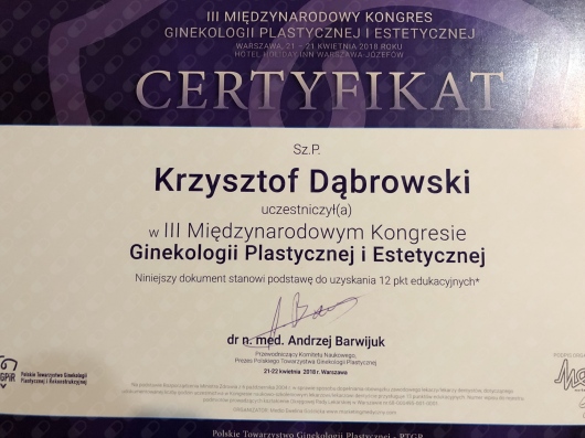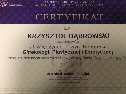- Polskiego Towarzystwa Ginekologii Plastycznej