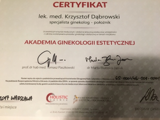 - Polskiego Towarzystwa Ginekologii Estetycznej i Rekonstrukcyjnej