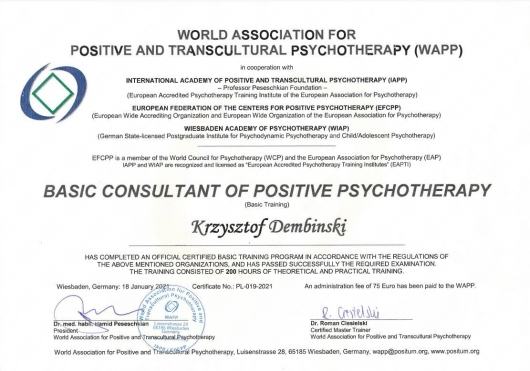 • Konsultacje psychoterapeutyczne Krzysztof Dembiński • Konsultacja psychologiczna •