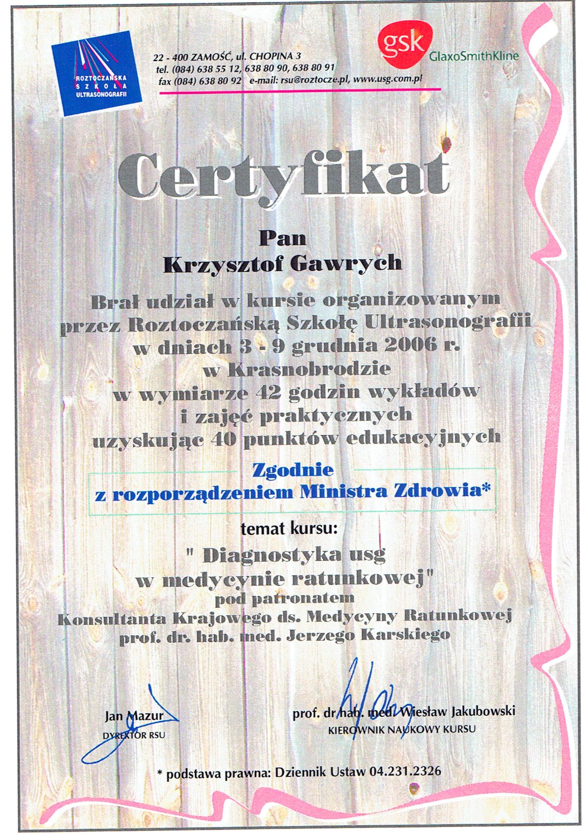 Bardzo dziękuję. Pozdrawiam. Krzysztof Gawrych