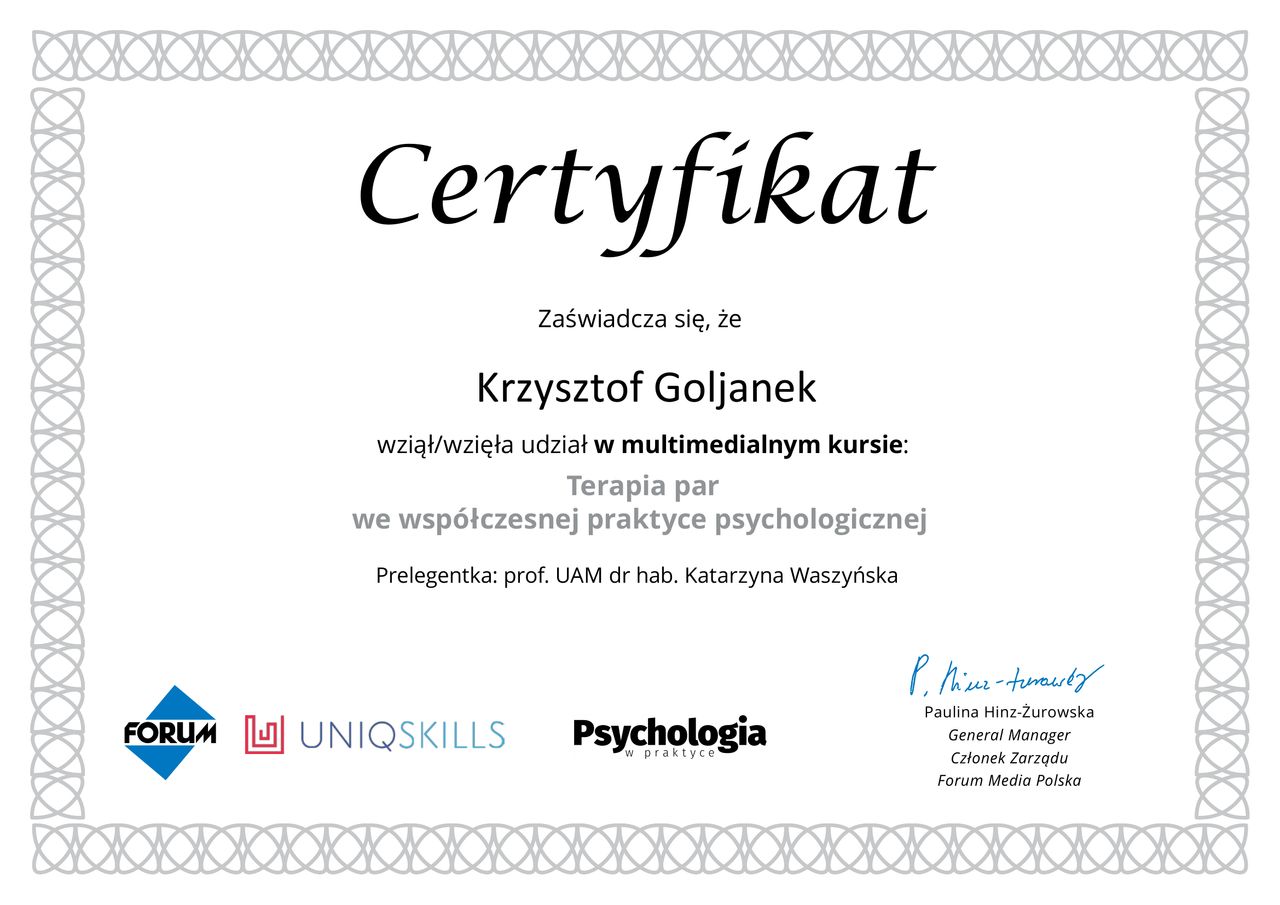 Bardzo mi miło czytać taką opinię. Cieszę się, że sesje Wam pomogły. Życzę Wam wszystkiego dobrego na dalszej drodze życiowej :) Pozdrawiam serdecznie, Krzysztof Goljanek