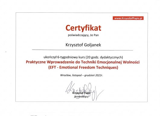 Dziękuję Ci za tę opinię Olu. Poruszyła mnie :) Często podkreślam w odpowiedziach, że cieszę się, że sesje pomogły. Prawda jest taka, że to najbardziej potwierdza moje poczucie sprawczości, kiedy wiem jaki jest efekt. Wobec tego wyrażam wdzięczność :) Pozdrawiam serdecznie, Krzysztof Goljanek
