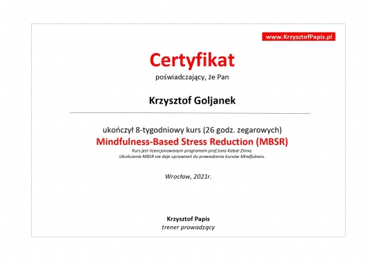 Dziękuję Ci Monika za tę opinię, miło mi :) Bardzo się cieszę, że zarówno sesje indywidualne jak i warsztaty mindfulness nie tylko były, ale i są dalej dla Ciebie wartościowe. Z mindfulness jest dokładnie jak z grą na instrumencie - jak jest praktyka to jest efekt :) Pozdrawiam serdecznie, Krzysztof Goljanek