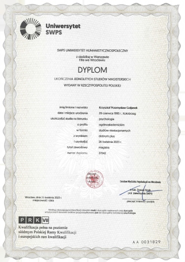 Obecnie kończę doktorat z psychologii dotyczący dobrostanu miłosno-seksualnego wśród par. Wiedzę naukową łączę z praktyką terapeutyczną, aby skutecznie wspierać osoby i pary w budowaniu satysfakcjonujących relacji.