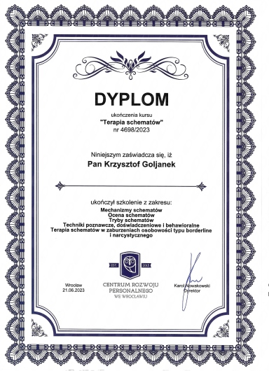 Jaki jest zakres porad oferowanych przez Krzysztof Goljanek?Krzysztof Goljanek to psycholog. Na podstawie swojego doświadczenia i wykształcenia Krzysztof Goljanek oferuje usługi takie jak: Konsultacja psychologiczna, psychoterapia indywidualna, Konsultacja psychologiczna dla par, psychoterapia par, psychological consultation in English, couple therapy in English.