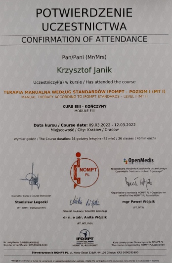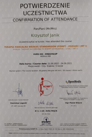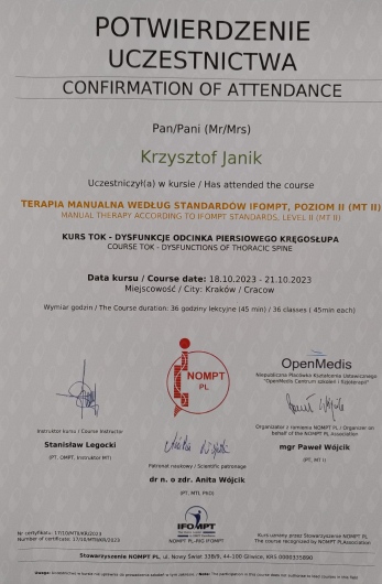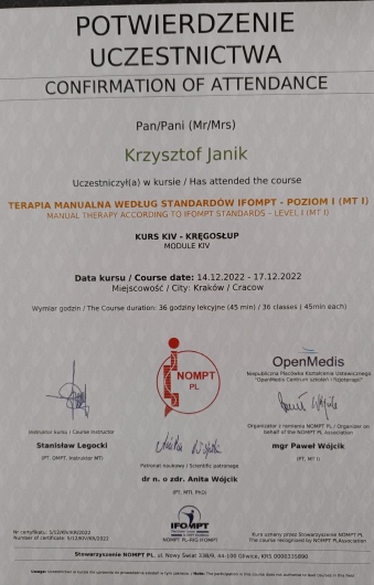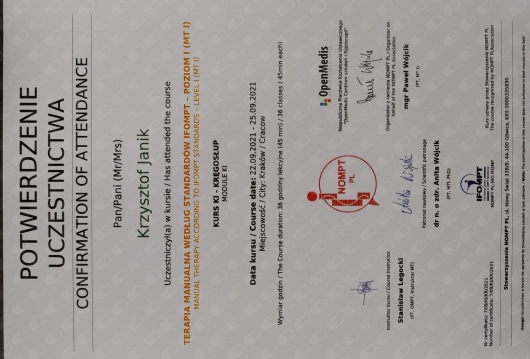 Polecam terapeutę manualnego Stanisław Legocki.