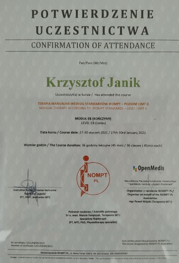 Bardzo dobry fizjoterapeuta - godny polecenia - wiele razy udzielił mi pomocy i myślę że jeszcze nie jeden raz pomoże.