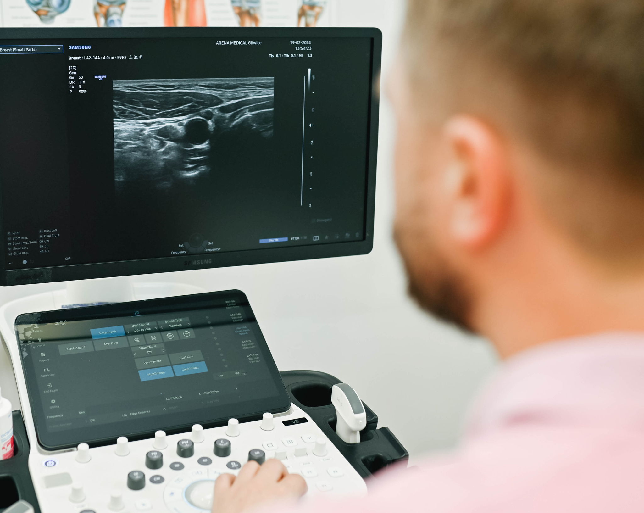 • jamy brzusznej (wymaga wcześniejszego przygotowania: 8h na czczo oraz pełny pęcherz moczowy)