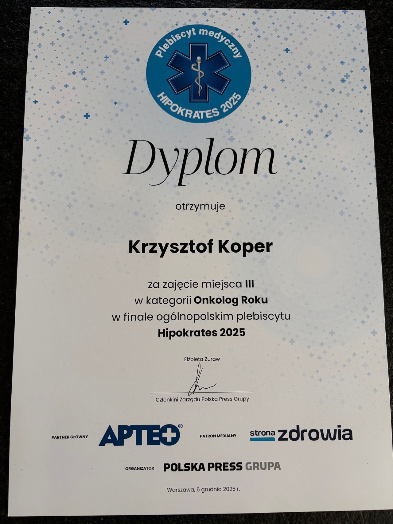 Czy Krzysztof Koper przyjmuje online, bez konieczności pojawiania się w placówce?Tak, Krzysztof Koper oferuje konsultacje online. Wybierz opcję „konsultacja online” przy umawianiu wizyty, a zobaczysz dostępne terminy.