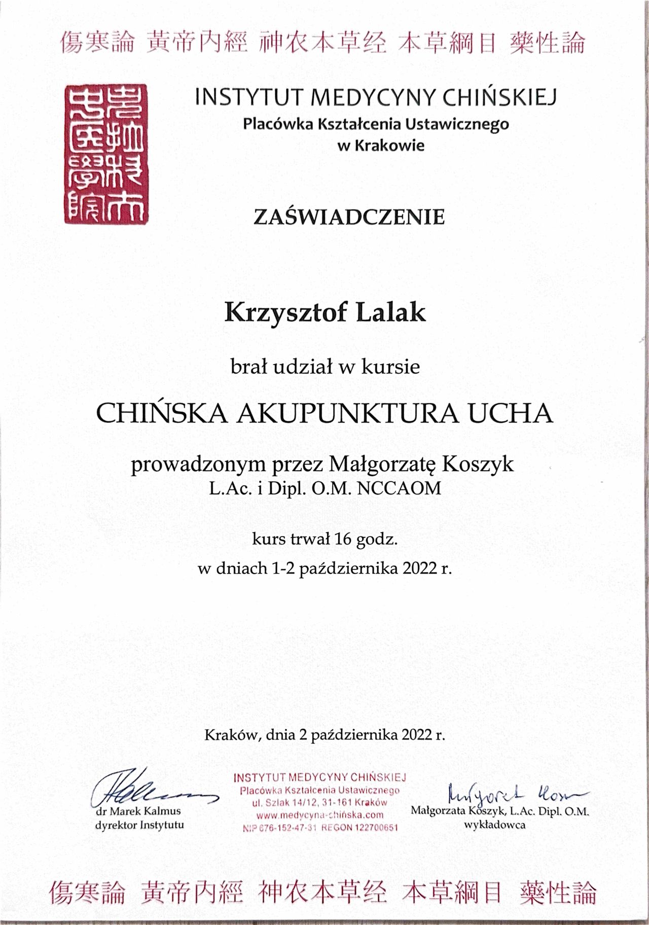 Pan Krzysztof bardzo merytoryczny i pozytywny człowiek. Na pierwszej wizycie (z rwą kulszową) od razu objaśnił nad czym i jak będziemy pracować. Zaproponował dołożenie jednej opcji aby do sprawy podejść holistycznie. Po kilku wizytach widać efekty (ból się zmniejszył). Podczas samych zabiegów można normalnie, po ludzku porozmawiać co akurat dla mnie ma duże znaczenie. Z czystym sumieniem mogę polecić wizyty u Pana Krzysztofa.