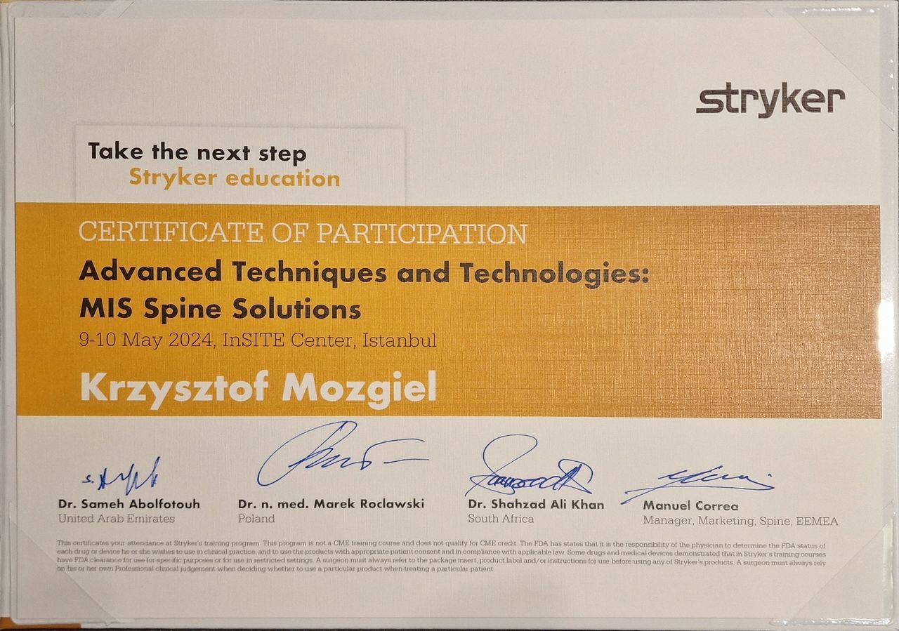 Szczególne zainteresowania: małoinwazyjna chirurgia kręgosłupa.