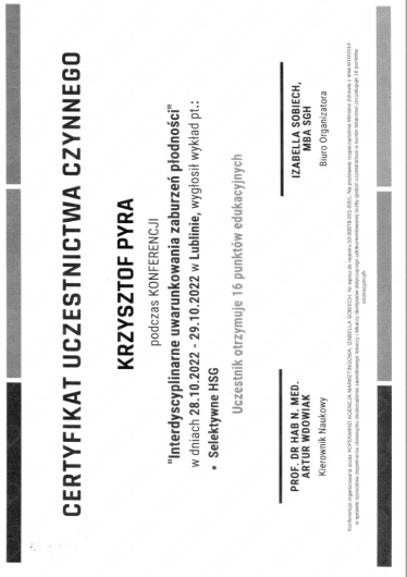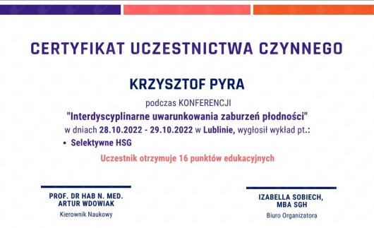 Serdecznie polecam Pana doktora K.Pyrę wraz z całym zespołem oraz Panem doktorem I.Zychem. Mimo początkowych trudności udało udrożnić się dwa jajowody. Pełen profesjonalizm i zaangażowanie. Bardzo sympatyczny zespół. Serdecznie dziękuję.