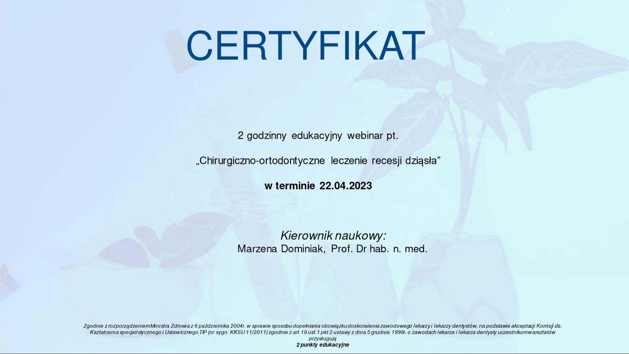 Niemniej mam nadzieję, że wszelkie dolegliwości ustąpiły, a w przypadku jakichkolwiek problemów zapraszam na wizytę kontrolną.