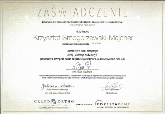 Jaki jest zakres porad oferowanych przez Krzysztof Smogorzewski-Majcher?Krzysztof Smogorzewski-Majcher to ortodonta, stomatolog. Na podstawie swojego doświadczenia i wykształcenia Krzysztof Smogorzewski-Majcher oferuje usługi takie jak: aparaty ruchome, aparaty stałe estetyczne, aparaty stałe, profilaktyka wad zgryzu, miniimplanty ortodontyczne, leczenie wad zgryzu, konsultacja ortodontyczna dzieci, zdjęcie aparatu stałego / 1 łuk, aparat ortodontyczny Malu, konsultacja ortodontyczna.