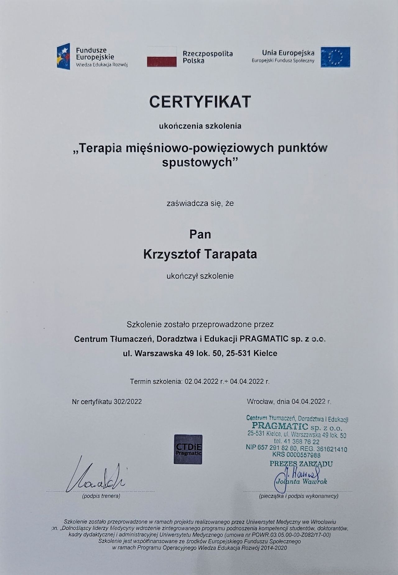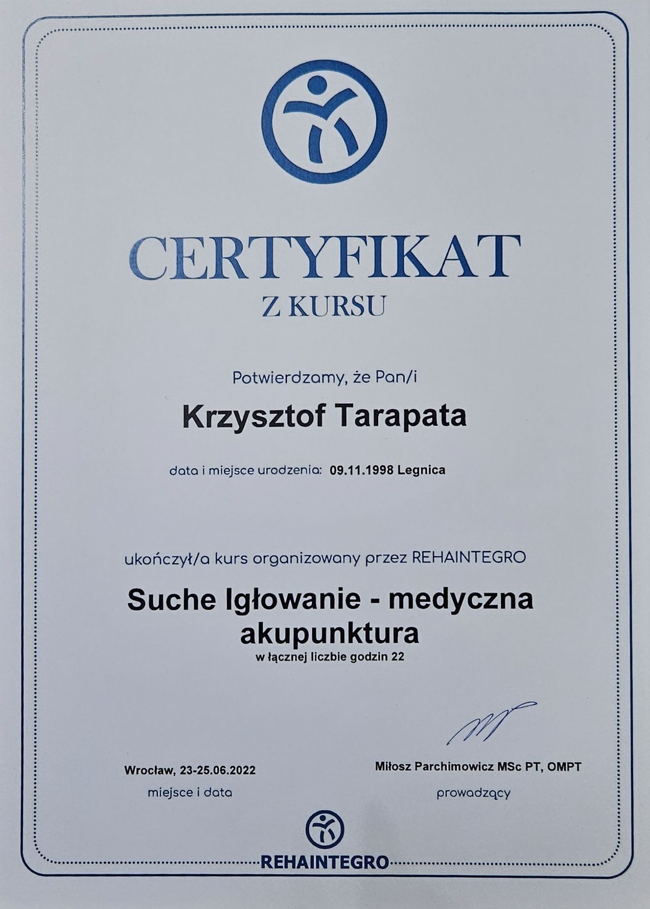 Jestem absolwentem studiów magisterskich na kierunku fizjoterapia na Uniwersytecie Medycznym im. Piastów Śląskich we Wrocławiu.