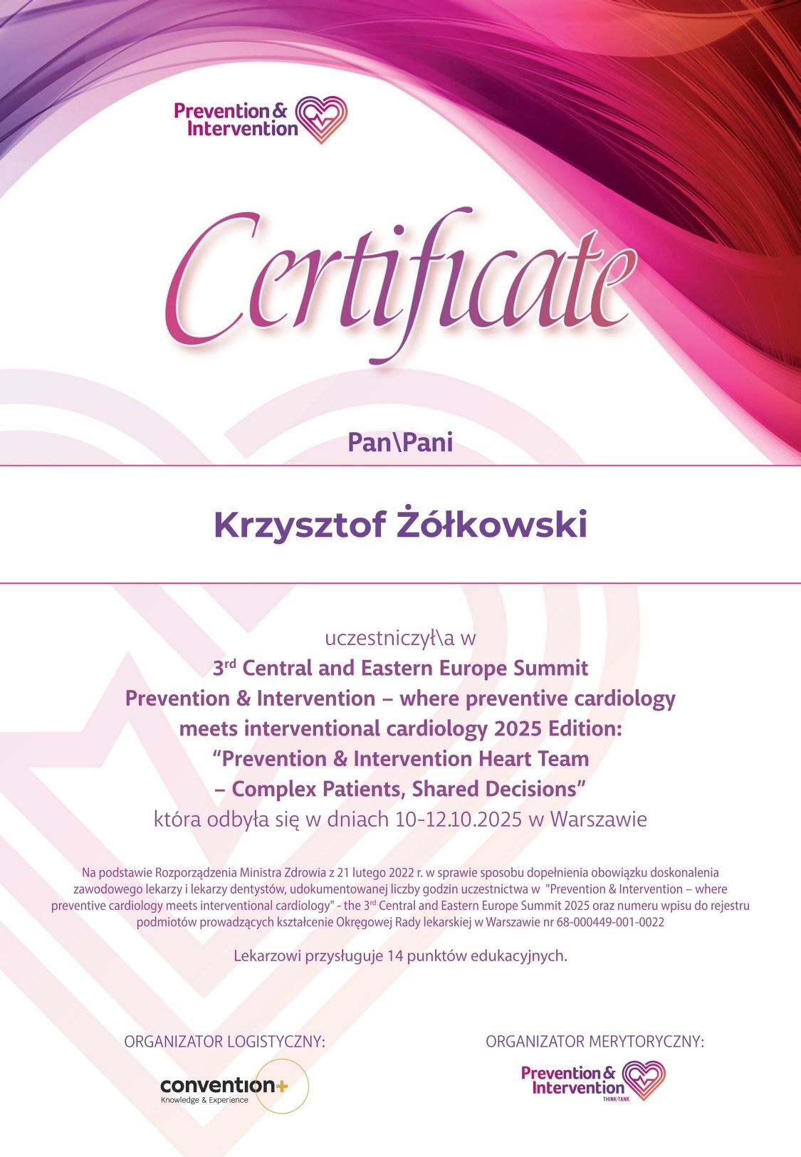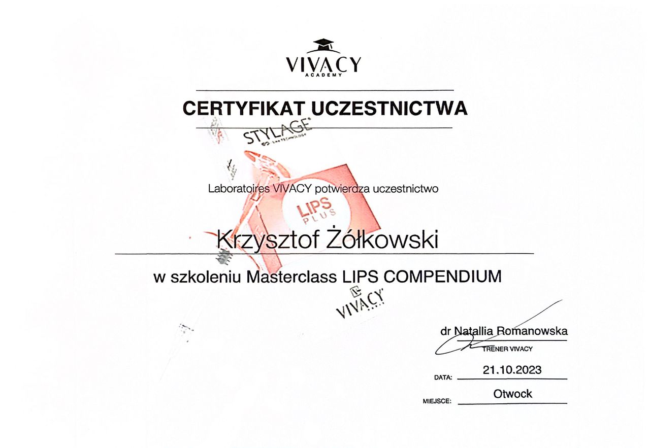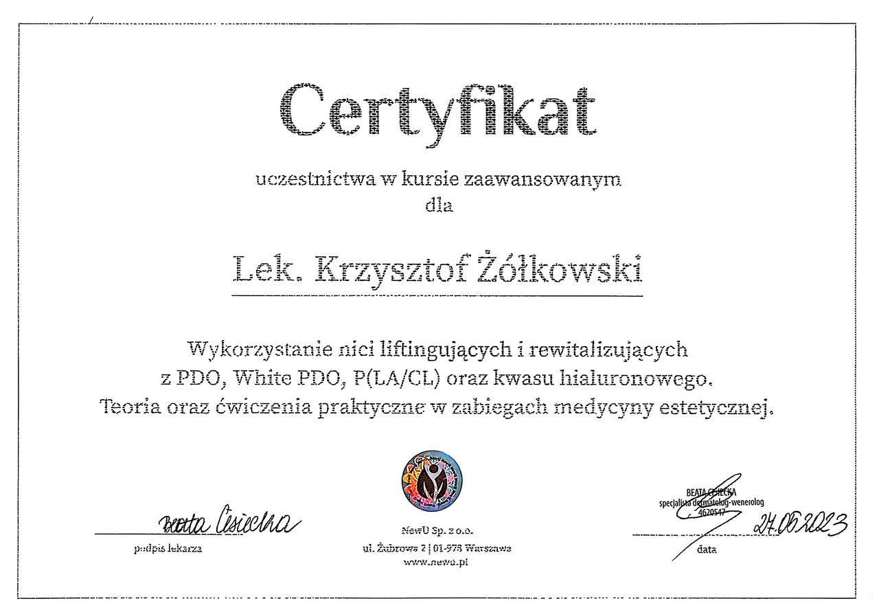 Stale podnoszę swoje kwalifikacje, biorąc udział w certyfikowanych szkoleniach i kongresach medycznych na terenie Europy.
