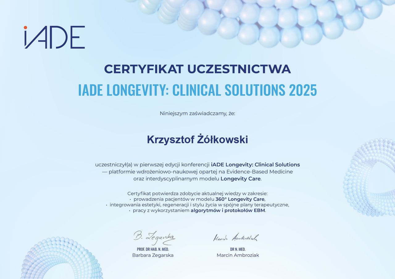 Jestem lekarzem, który łączy doświadczenie kliniczne zdobywane w niemieckim systemie opieki zdrowotnej z procedurami medycyny estetycznej. Absolwent Wydziału Lekarskiego Uniwersytetu Medycznego we Wrocławiu (2021) oraz studiów podyplomowych z Medycyny Estetycznej (2023).