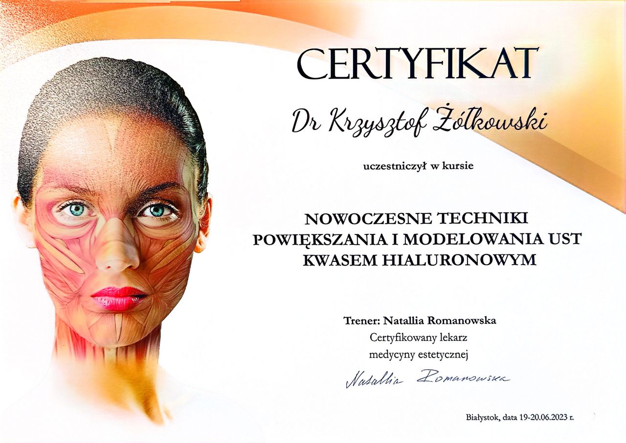 Jaki jest zakres porad oferowanych przez Krzysztof Żółkowski?Krzysztof Żółkowski to lekarz wykonujący zabiegi medycyny estetycznej, w trakcie specjalizacji (urolog). Na podstawie swojego doświadczenia i wykształcenia Krzysztof Żółkowski oferuje usługi takie jak: konsultacja urologiczna, Plastyka krótkiego wędzidełka, Obrzezanie, Konsultacja z zakresu medycyny estetycznej, usuwanie zmian skórnych, mezoterapia, Stymulator tkankowy, Botoks, Kwas hialuronowy.