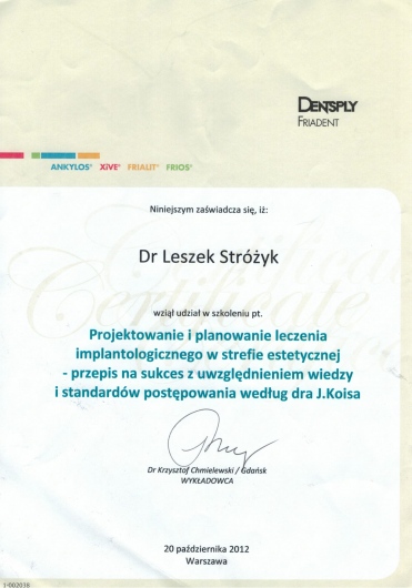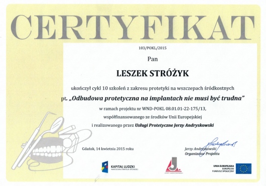 Jaki jest zakres porad oferowanych przez Leszek Stróżyk?Leszek Stróżyk to w trakcie specjalizacji (chirurg stomatologiczny). Na podstawie swojego doświadczenia i wykształcenia Leszek Stróżyk oferuje usługi takie jak: implanty, protezy, chirurgia stomatologiczna, konsultacja implantologiczna, tomografia komputerowa, zdjęcia pantomograficzne, chirurgiczne usuwanie zębów, wypełnienie kompozytowe, odbudowa zębów, korony.