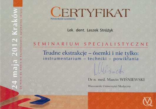 Serdecznie polecam wizytę u Pana doktora. Dwie zatrzymane ósemki nazywane przez innych stomatologów jako „ciężkie” do usunięcia nie stanowiły dla Pana Leszka problemu. Zabiegi nie skończyły się dla mnie traumą, za co bardzo Panu dziękuję!