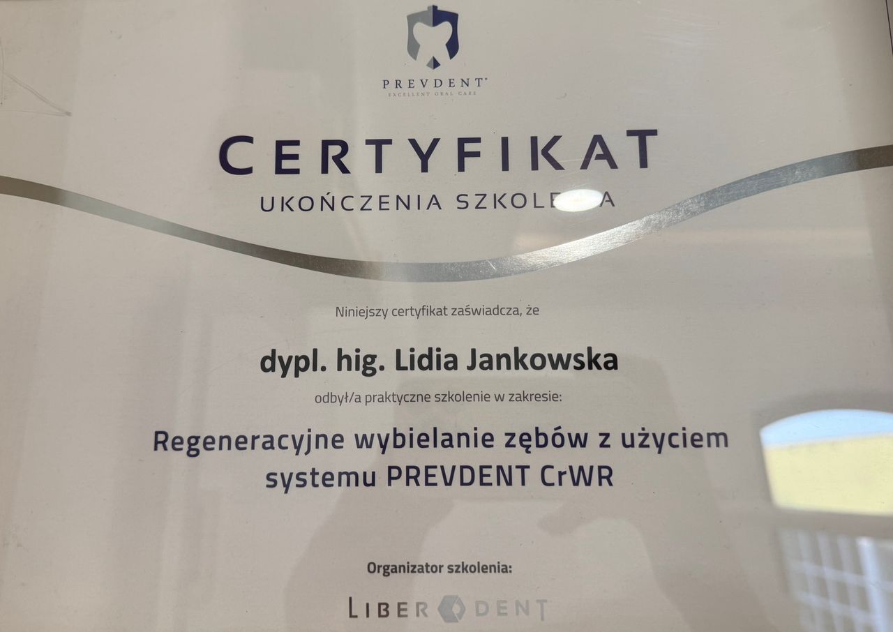 Z przyjemnością wystawiam bardzo pozytywny komentarz. Dziś z rąk Pani Lidi miałam wykonywaną higienizacje , która przebiegła bardzo sprawnie, bezboleśnie w przecudownej atmosferze. Pani Lidia to przesympatyczna osoba, której można zaufać i z pewnością wszystko co robi jest na wysokim poziomie i z pełnym zaangażowaniem.