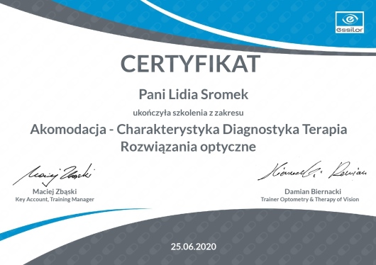 Pani Lidia wykonała szczegółowy wywiad oraz szczegółowy szereg badań. Wszystko mi wyjaśniła, co sprawdza i po co, a następnie dokonała podsumowania wyników, objaśniając jakie jest źródło mojego problemu ze wzrokiem. Odpowiadała też na wszelkie zadane przeze mnie pytania. Wizyta przebiegła w atmosferze bardzo przyjaznej.
