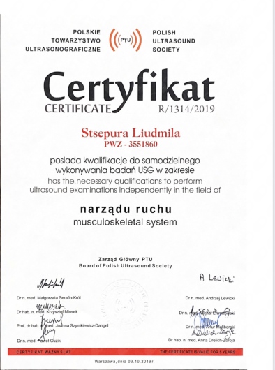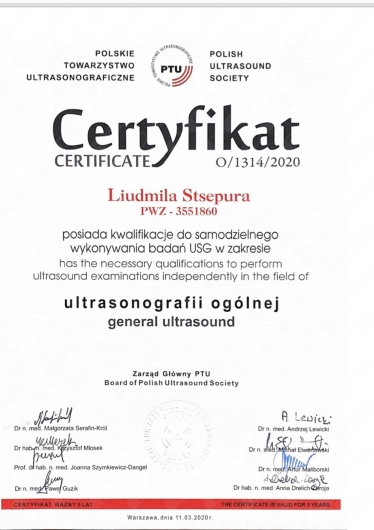 Jaki jest zakres porad oferowanych przez Liudmila Stsepura?Liudmila Stsepura to ultrasonografista. Na podstawie swojego doświadczenia i wykształcenia Liudmila Stsepura oferuje usługi takie jak: USG jamy brzusznej, USG jąder, USG piersi, USG ślinianek, USG tarczycy, USG układu moczowego, USG węzłów chłonnych, USG stawów kolanowych, USG stawów łokciowych, USG stawów skokowych.