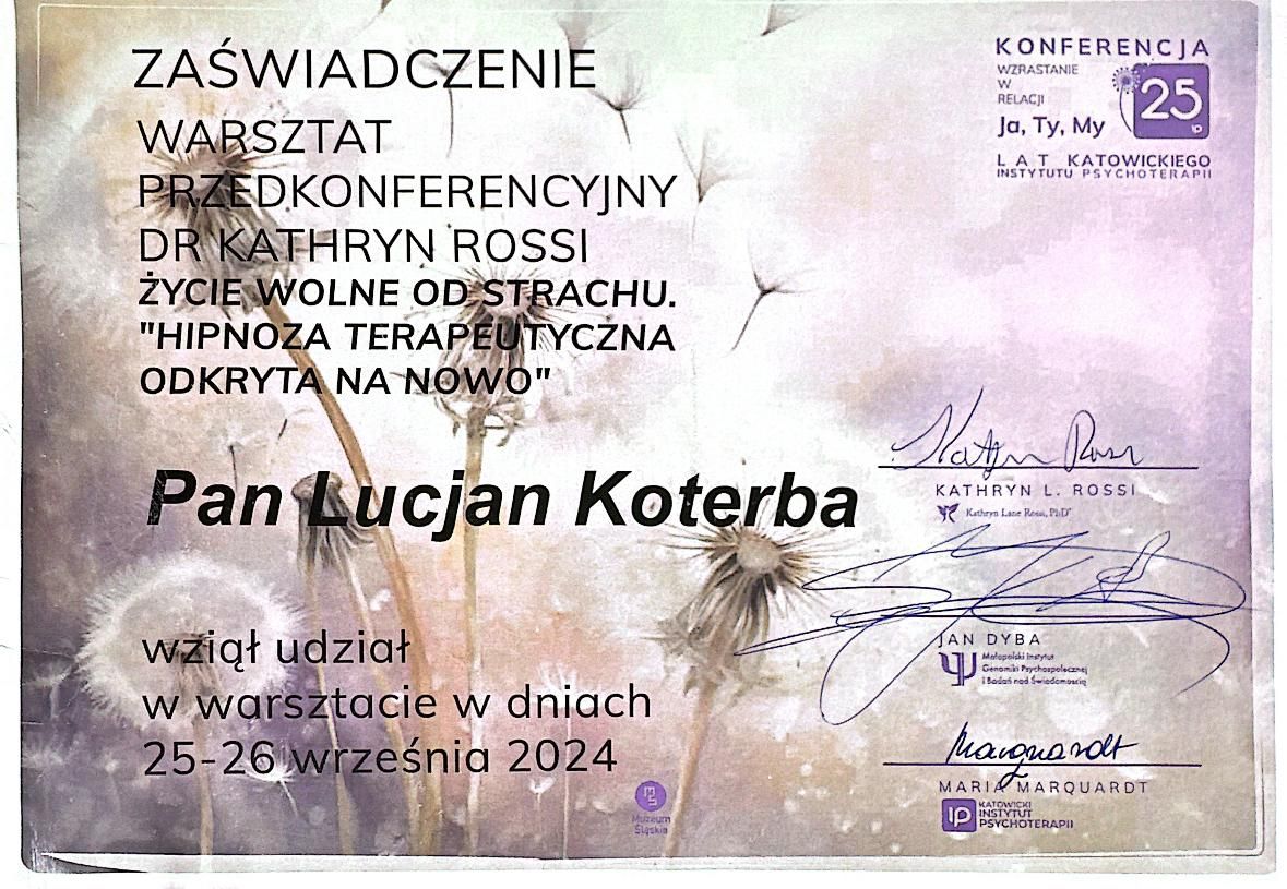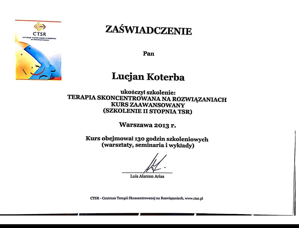 Zacznę od tego, że Pan Lucjan pomógł mi zrozumieć na czym polegają podwójne standardy w relacjach. Bardzo dobrze wspominam terapię z Panem Lucjanem. Jestem DDA, terapia z Panem Lucjanem bardzo pomogła mi uwierzyć w swoje możliwości zarówno w życiu osobistym jak i zawodowym. Polecam terapię u Pana Lucjana wszystkim, którzy chcą zmienić swoje życie na lepsze.