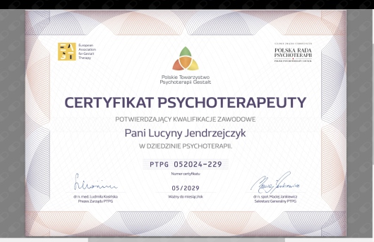 Z serca polecam psychoterapie prowadzone przez Panią Lucynę Jendrzejczyk. Dzięki nim udało mi się lepiej zrozumieć swoje emocje i zachowania. Spotkania odbywały się w ciepłej i komfortowowej atmosferze. Były pełne wsparcia oraz mądrych wskazówek. Pomogły mi one odzyskać równowagę i wewnętrzny spokój. To ogromny dar mieć tyle empatii, wiedzy i umiejętności, które przekazywane drugiej osobie czynią cuda i otwierają umysł na pozytywne myślenie oraz radość życia. Dziękuję