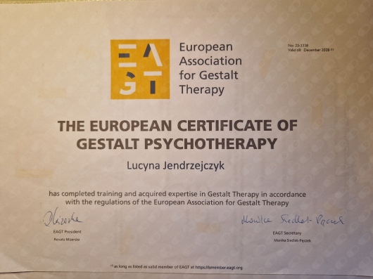 Panią Lucynę miałam okazję poznać w największym kryzysie, w jakim byłam do tej pory. Pomogła mi sobie z nim poradzić. Nauczyła mnie jak ponownie poczuć swoje emocje, od których byłam odcięta. Nauczyła mnie bronić swojego zdania, jak poczuć to, czego chcę. Dostałam koszyk narzędzi do opiekowania się sobą i dalszej pracy nad czuciem własnych emocji, a także do pracy z własnym ciałem. Jestem dużo spokojniejsza, zaczęłam się akceptować. Miałam od dziecka trudności z relacjami z ludźmi, teraz mam naprawdę dużo radości z rozmów z nimi, jest mi niebywale łatwo i przyjemnie rozmawiać ze znajomymi i nieznajomymi. Zupełnie, jakbym dostała inne życie po kilku latach terapii. Jestem pani Lucynie bardzo wdzięczna za wszystkie rozmowy i lekcje, również te trudne. Bardzo ją szanuję jako człowieka i jako fachowca w swojej dziedzinie.