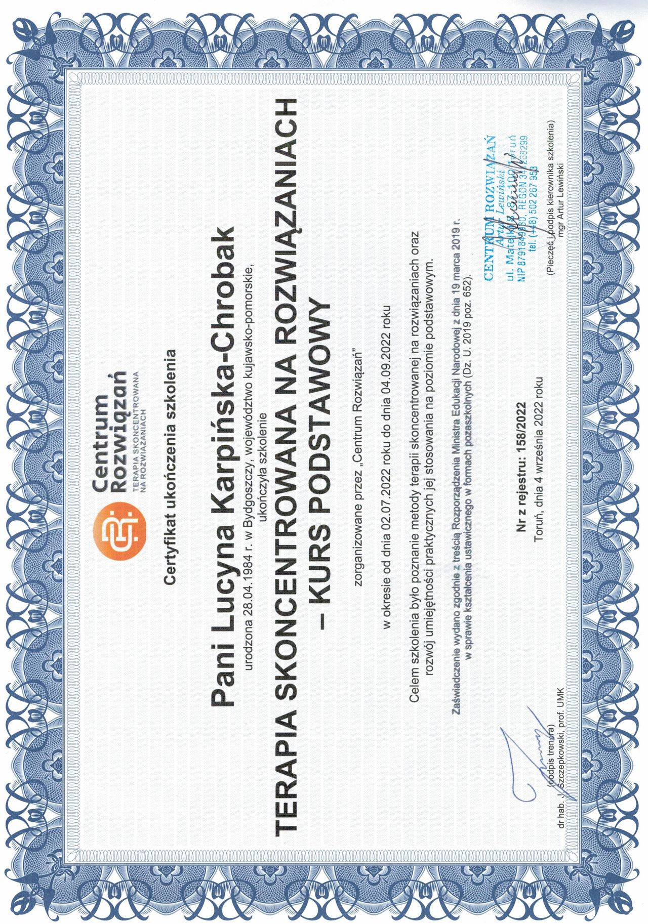Jako psycholog wspieram osoby, które poszukują zrozumienia, stabilności i realnej zmiany w swoim życiu. Posiadam certyfikat I stopnia Terapii Skoncentrowanej na Rozwiązaniach (TSR), a swoją wiedzę pogłębiam w akredytowanym, 4-letnim kursie psychoterapii.