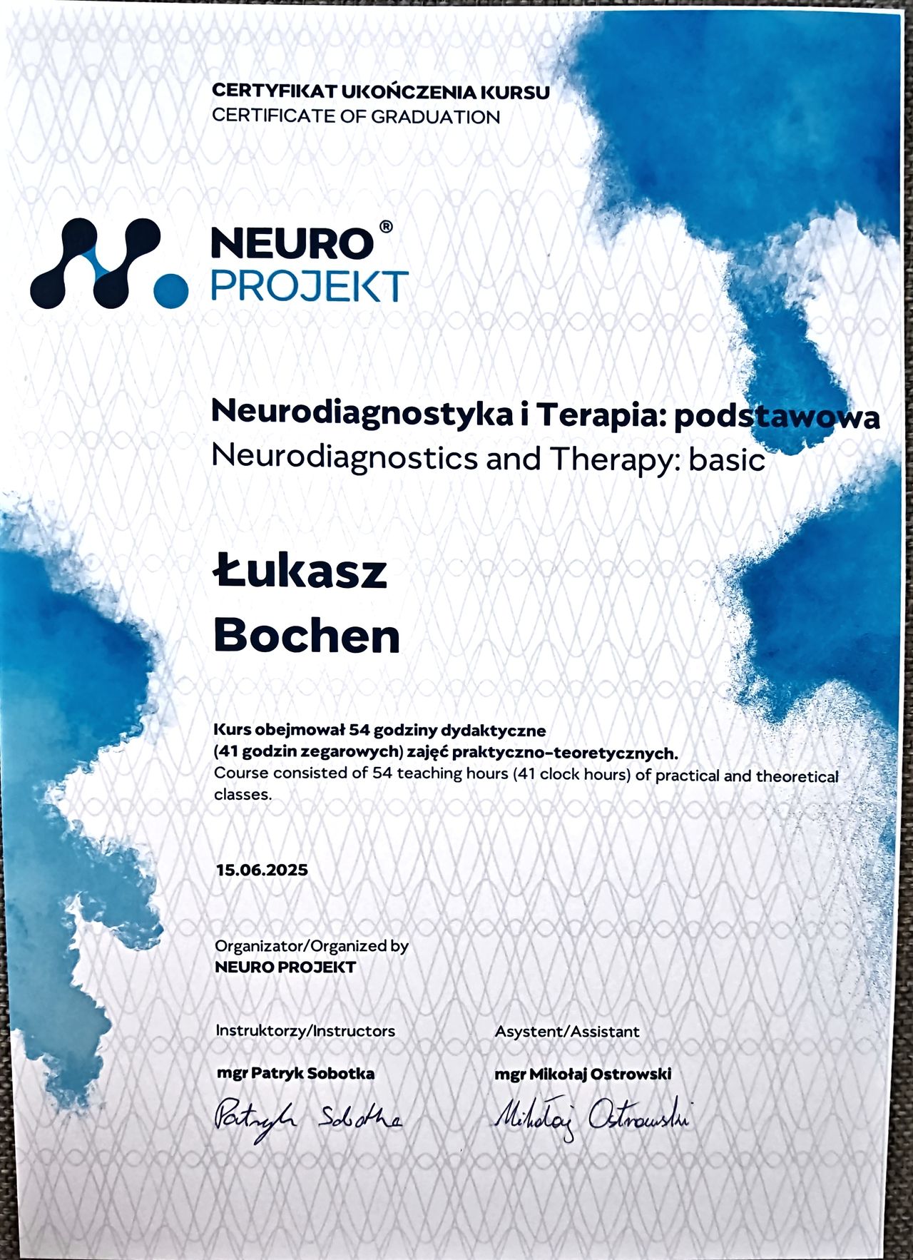 Bardzo kompetentny i zaangażowany specjalista, jego sposób tłumaczenia problemów z którymi do niego przyszłam bardzo jasny i przystępny. Dzięki trafnym diagnozom, zastosowanym przez Pana Łukasza zabiegom i stosowaniu się do jego zaleceń szybko zauważyłam poprawę i moja jakość życia wzrosła. To godny polecenia specjalista.