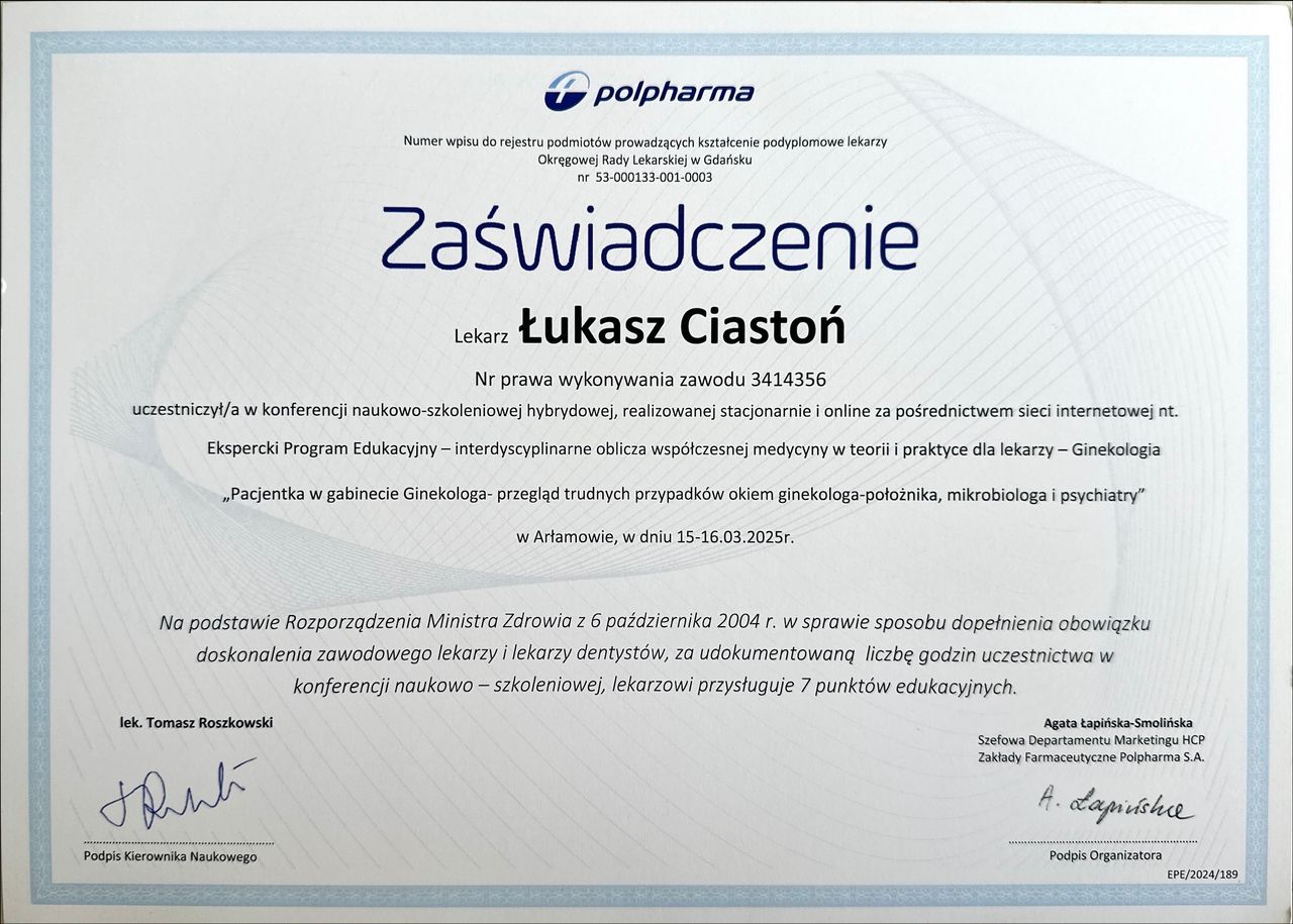 Jaki jest zakres porad oferowanych przez Łukasz Ciastoń?Łukasz Ciastoń to ginekolog. Na podstawie swojego doświadczenia i wykształcenia Łukasz Ciastoń oferuje usługi takie jak: badania ginekologiczne, konsultacja z zakresu ginekologii estetycznej, implanty, konsultacja ginekologiczna, laseroterapia zmian ginekologicznych, monitorowanie owulacji, konsultacja ginekologiczna + cytologia, konsultacja położnicza + USG, laserowa rewitalizacja pochwy, laserowe leczenie nietrzymania moczu.