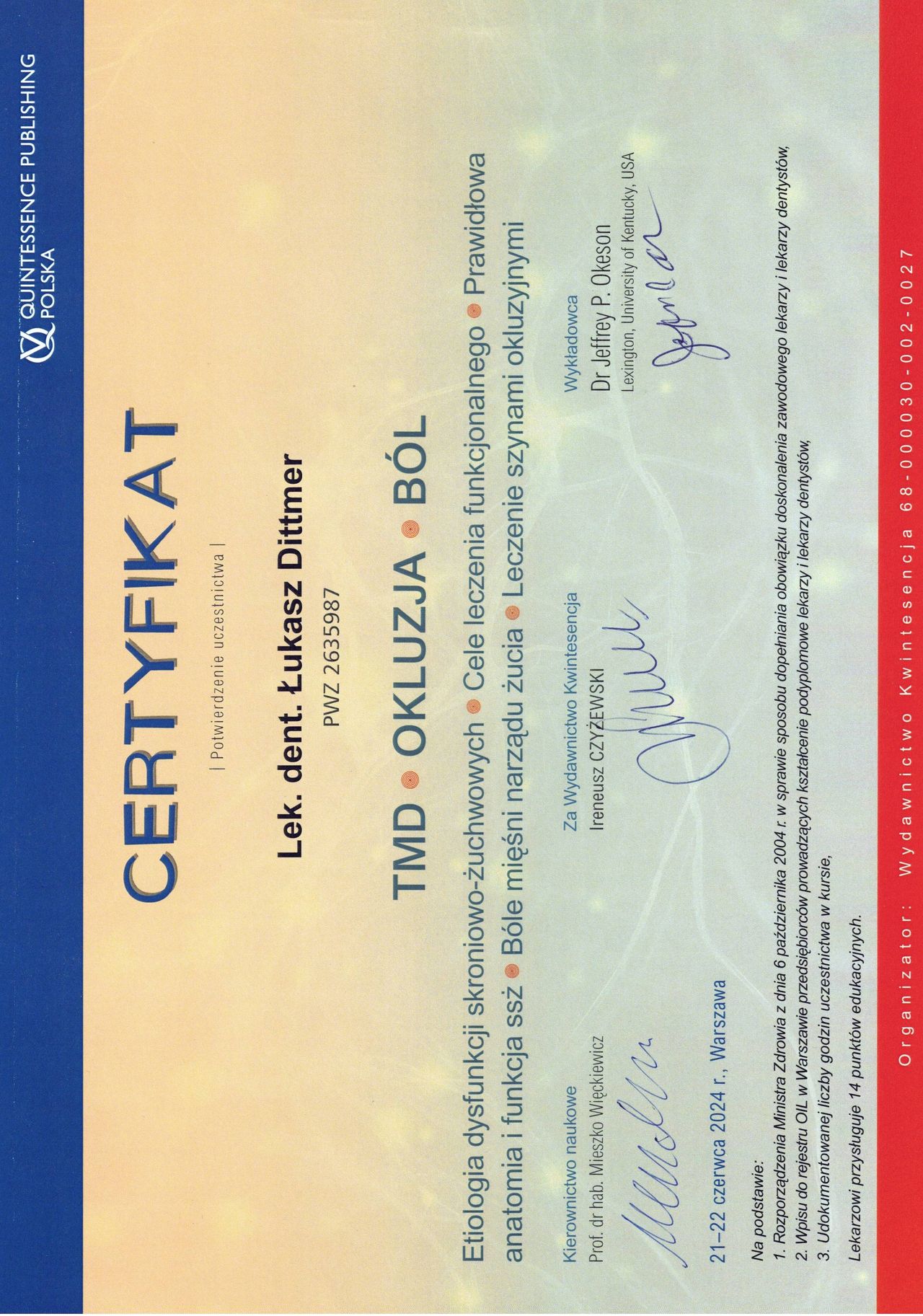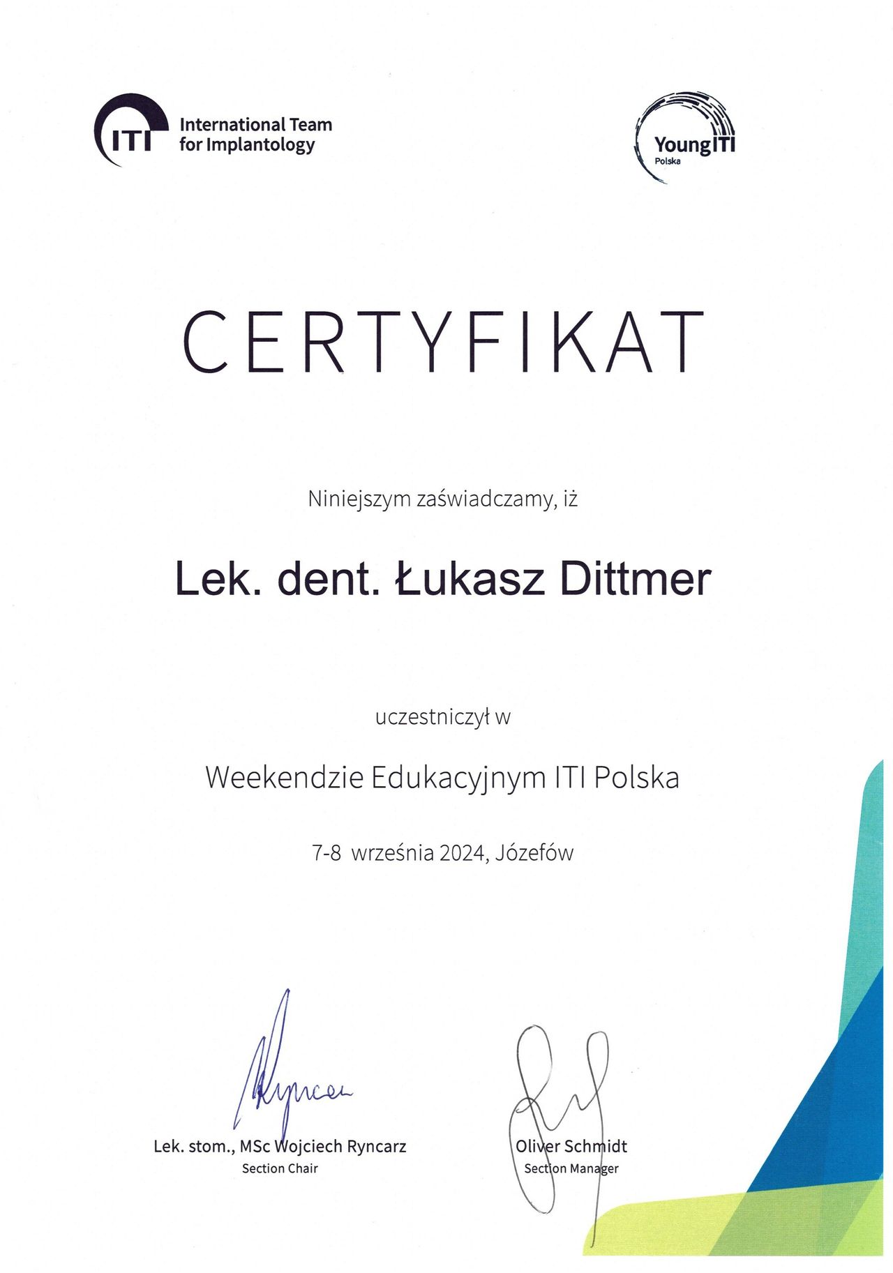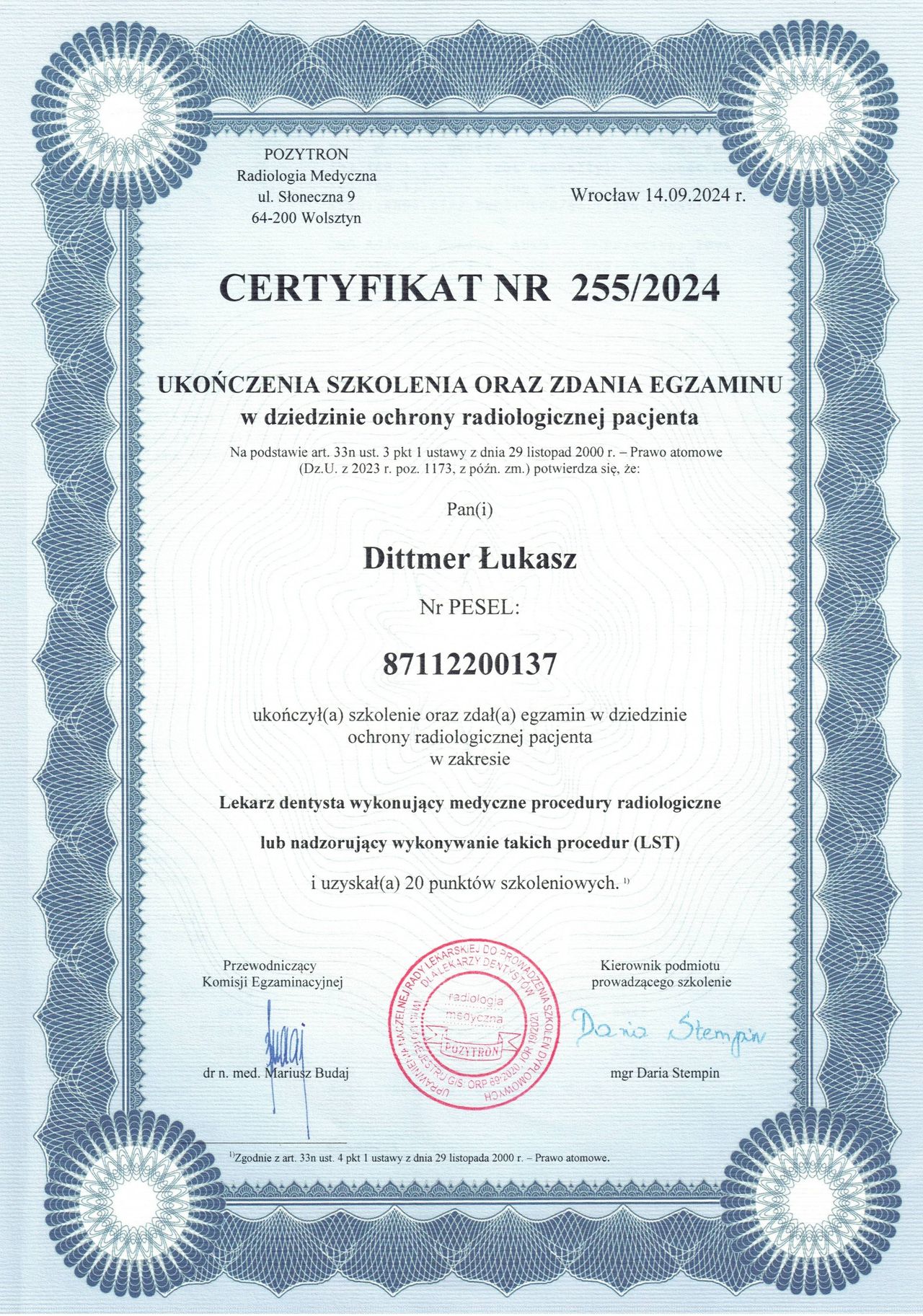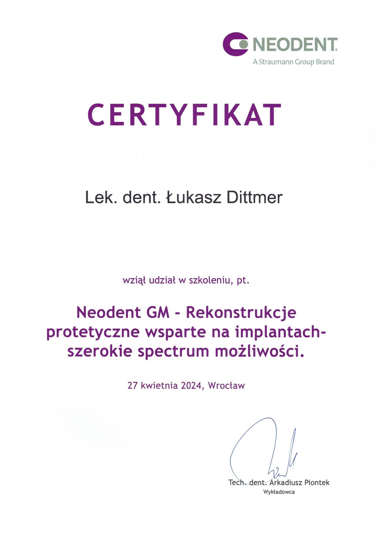Dziękuję za pozytywną opinię. lek. stom. Łukasz Dittmer