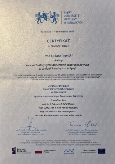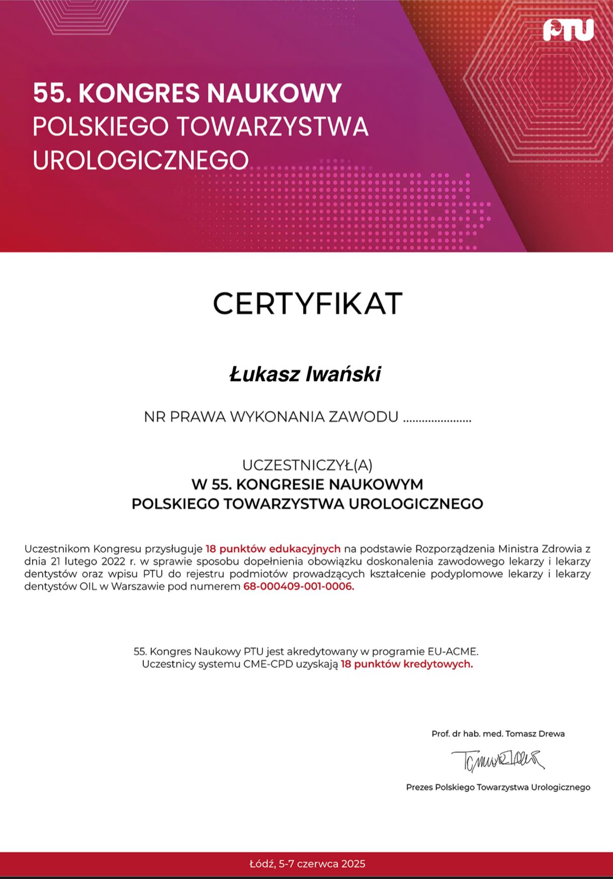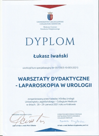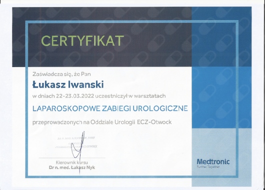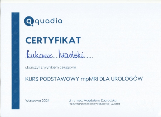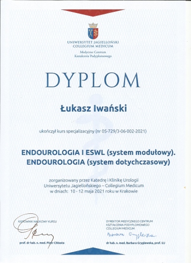 I am graduate of the Poznan University of Medical Sciences (PUMS). I currently work at the Mazovia Urological Hospital. I am also employed at the Jan Długosz University in Częstochowa as a scientific assistant. I worked at the Urology Clinic of the Medical University of Łódź and the Department of Urology of the MSWiA Hospital in Łódź. I was employed at the Medical University of Łódź (UMED) as an assistant in the Department of Anatomy. I am a member of the Polish Society of Urology (PTU) and European Society of Urology (ESRU). I actively develop my surgical skills and urological knowledge. My professional interests include surgical treatment of kidney and bladder cancer and treatment of urolithiasis.