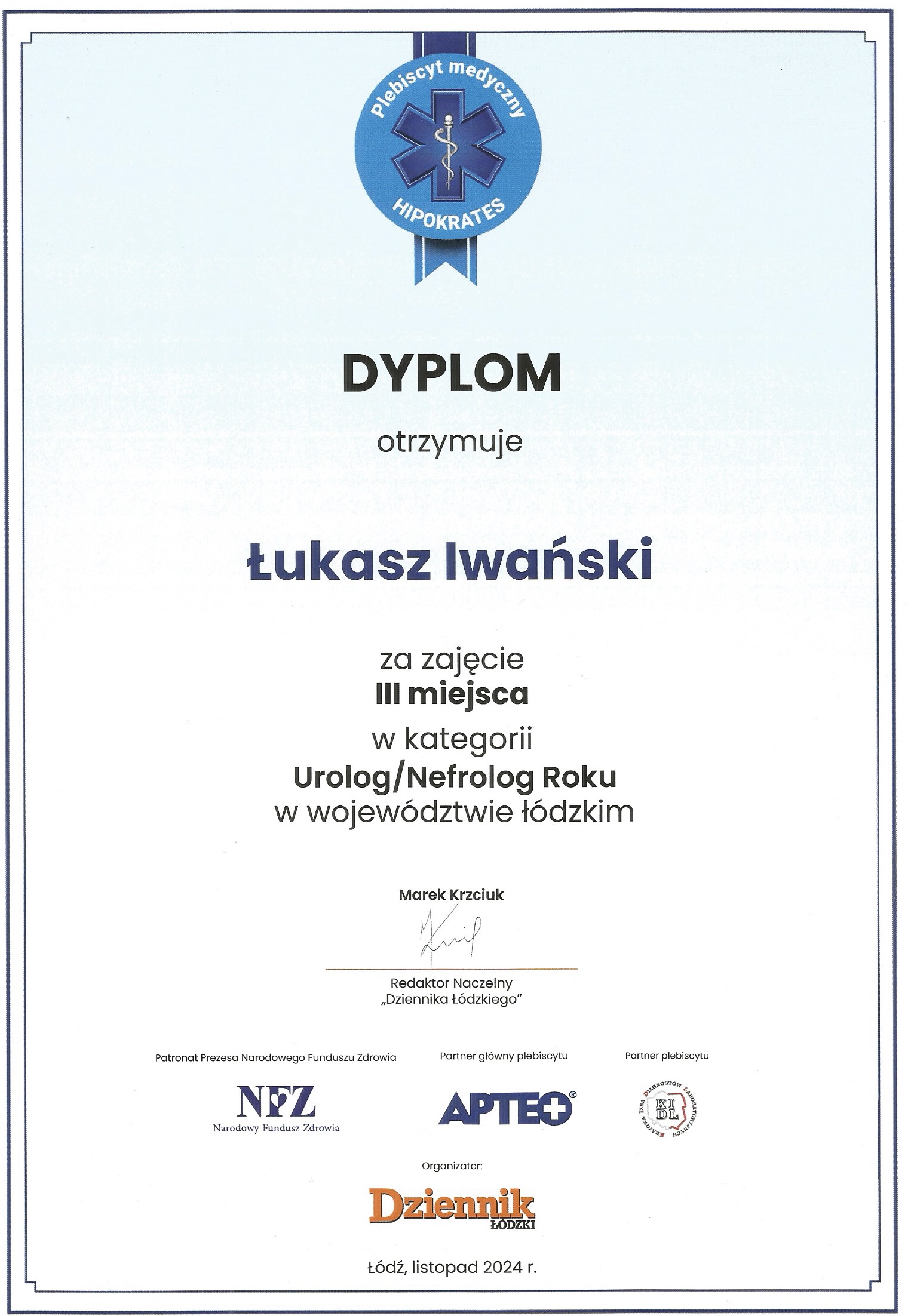 Dziękuję za głosy oddane głosowaniu na urologa roku. Dziękuję za docenienie mojej pracy.