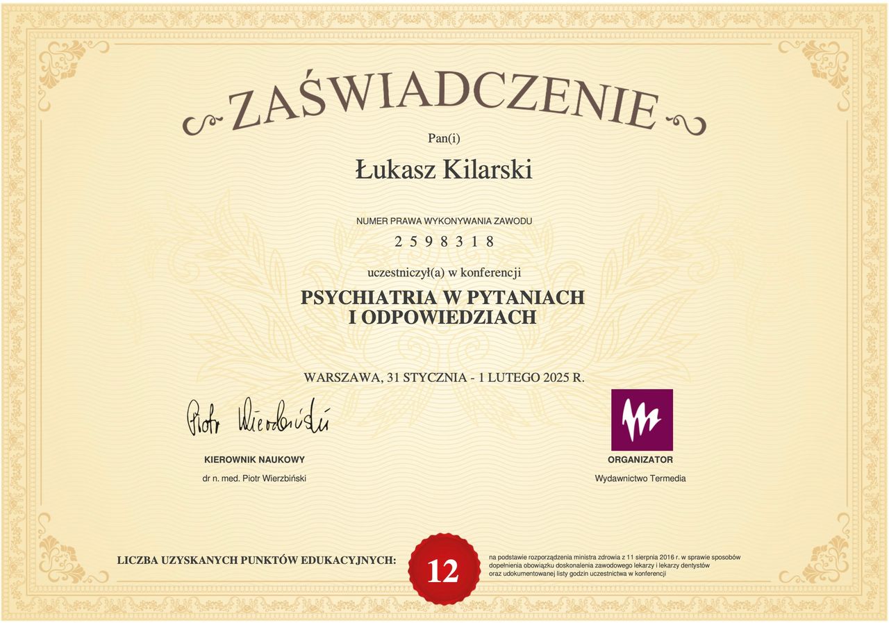 Oznacza to również, że nie zawsze kontynuuję leczenie psychostymulantami (Medikinet) na podstawie przedłożonej dokumentacji medycznej.