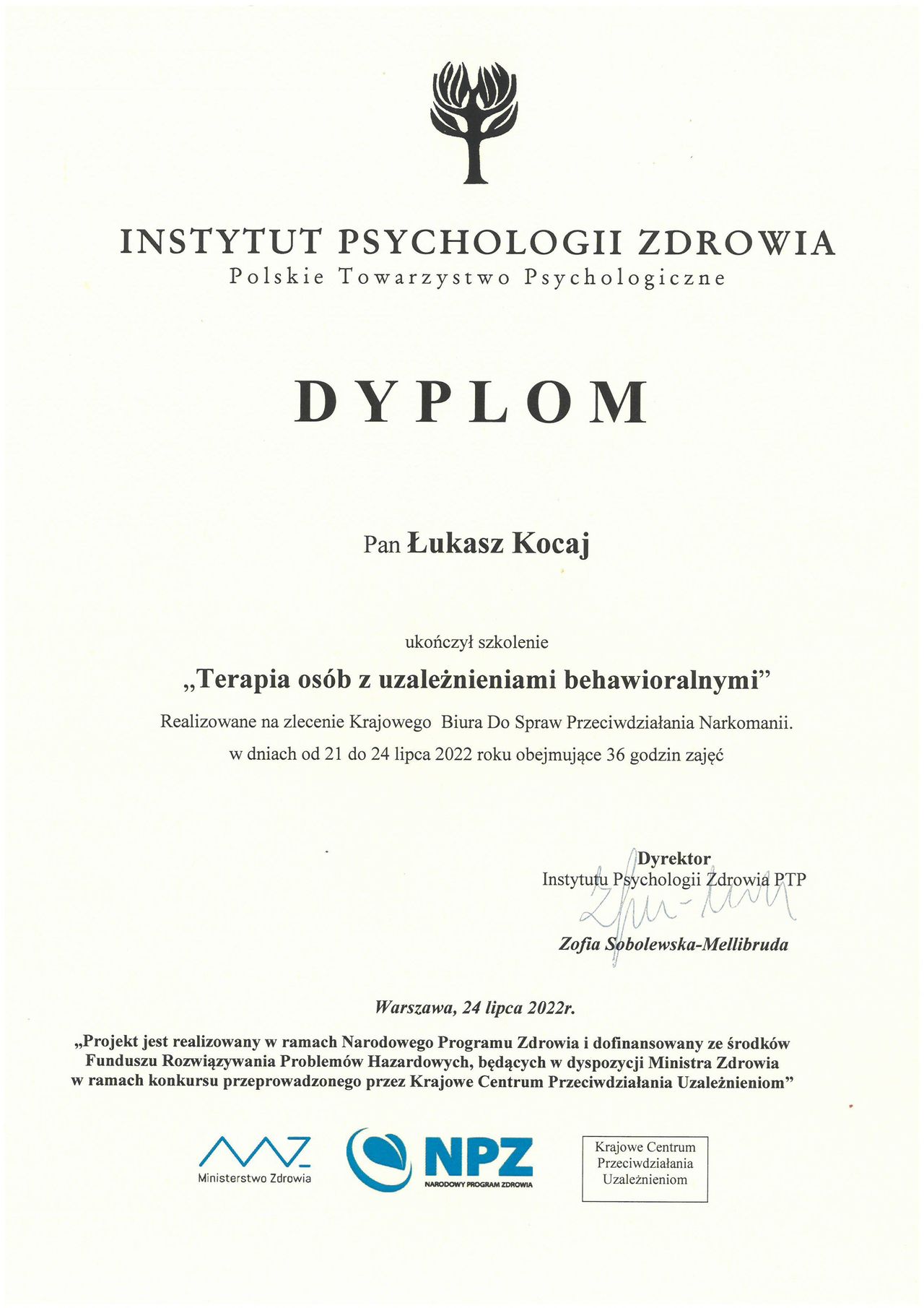 • Łukasz Kocaj - Gabinet Pomocy Psychologicznej i Psychoterapii Uzależnień • psychoterapia uzależnień •