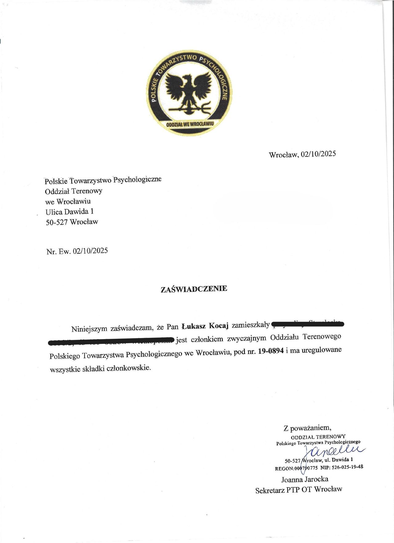 • Łukasz Kocaj - Gabinet Pomocy Psychologicznej i Psychoterapii Uzależnień • konsultacja psychologiczna (pierwsza wizyta) •
