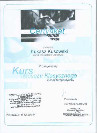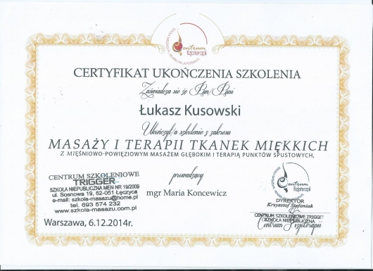 Nazywam się Łukasz Kusowski i ukończyłem studia magisterskie na Akademii Wychowania Fizycznego w Gdańsku. Od ponad 10 lat specjalizuję się w rehabilitacji i procesach powrotu do zdrowia, pomagając pacjentom odzyskać pełną sprawność i poprawić jakość ich życia.