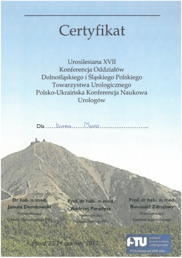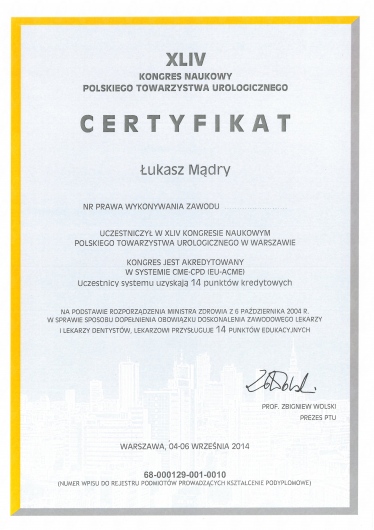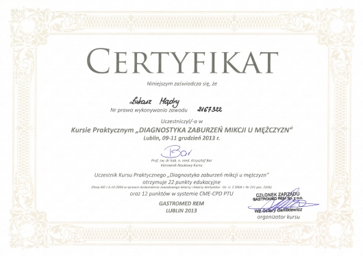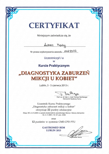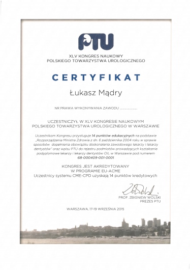 Zdaję sobie sprawę, że wizyta u Urologia dotyczy intymnych sfer życia zarówno kobiet jak i mężczyzn, dlatego dokładam wszelkich starań żeby wizyta przebiegała w miłej i dyskretnej atmosferze. Każdy pacjent traktowany jest przeze mnie profesjonalnie, leczony wg najnowszych wytycznych Europejskiego Towarzystwa Urologicznego. Żeby to zagwarantować stale poszerzam swoją wiedzę o najnowsze doniesienia w dziedzinie urologii, uroonkologii oraz uroginekologii, a gabinet w którym przyjmuję wyposażony jest w nowoczesny sprzęt, umożliwiający szybką, a przede wszystkim dokładną diagnostykę.
