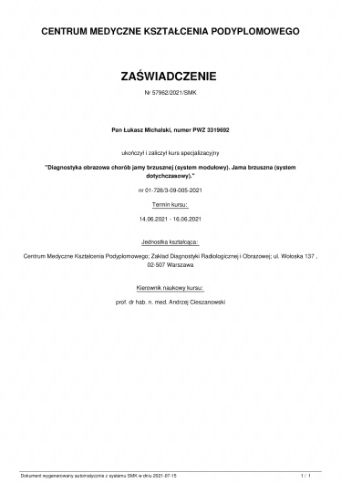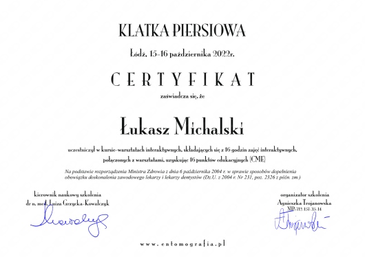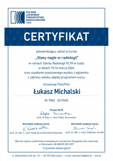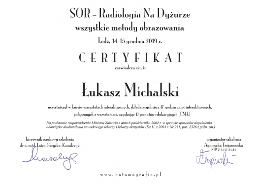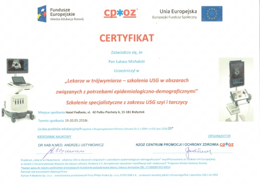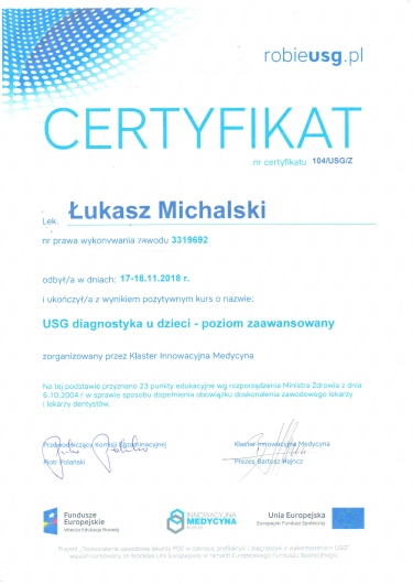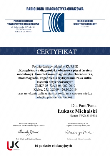 Jaki jest zakres porad oferowanych przez Łukasz Michalski?Łukasz Michalski to radiolog, ultrasonografista. Na podstawie swojego doświadczenia i wykształcenia Łukasz Michalski oferuje usługi takie jak: konsultacja radiologiczna, USG tarczycy, USG ślinianek, USG jamy brzusznej, USG układu moczowego, USG doppler tętnic szyjnych i kręgowych, USG węzłów chłonnych, USG / doppler żył kończyn dolnych, USG Doppler żył kończyn górnych, USG Doppler tętnic kończyn dolnych.