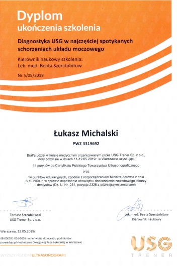 Jak Łukasz Michalski umawia wizyty?Łukasz Michalski używa kalendarza ZnanyLekarz, dlatego na stronie widzisz aktualne terminy. Wystarczy, że wybierzesz datę i godzinę, które odpowiadają Ci najbardziej. Umawianie wizyty jest darmowe, a tuż przed terminem wyślemy Ci przypomnienie.