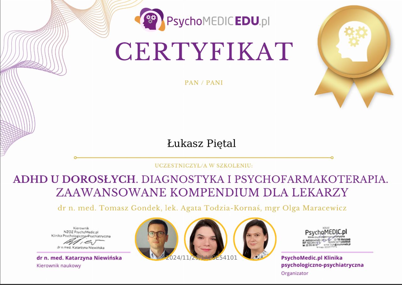 Bardzo miło wspominam wizyty u Pana Łukasza. To profesjonalny i przystepny specjalista z duża wiedzą na temat ADHD. Goraco polecam!