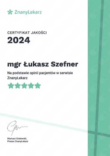 Czy Łukasz Szefner przyjmuje online, bez konieczności pojawiania się w placówce?Tak, Łukasz Szefner oferuje konsultacje online. Wybierz opcję „konsultacja online” przy umawianiu wizyty, a zobaczysz dostępne terminy.