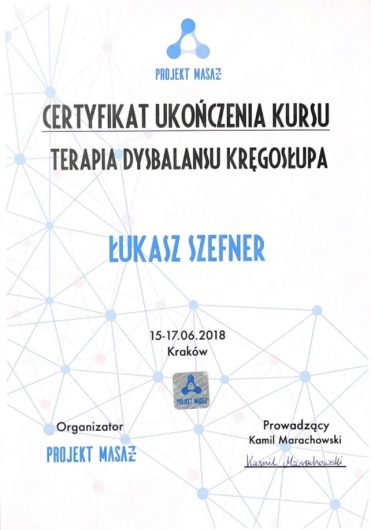 Jaki jest zakres porad oferowanych przez Łukasz Szefner?Łukasz Szefner to fizjoterapeuta. Na podstawie swojego doświadczenia i wykształcenia Łukasz Szefner oferuje usługi takie jak: konsultacja fizjoterapeutyczna, konsultacja fizjoterapeutyczna (pierwsza wizyta), terapia mięśniowo-powięziowa, konsultacja fizjoterapeutyczna (kolejna wizyta), Terapia manualna, fizjoterapia, rehabilitacja, terapia kręgosłupa, Stan ostry - Rehabilitacja, konsultacja online.