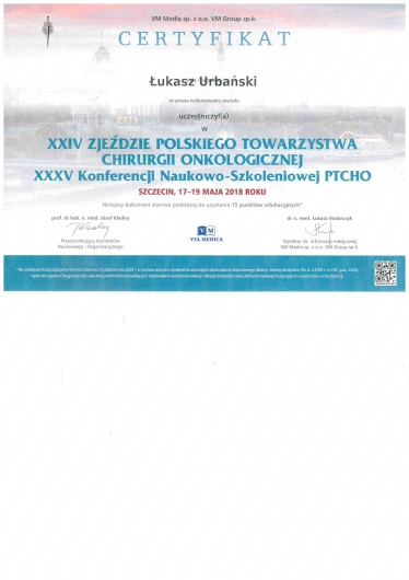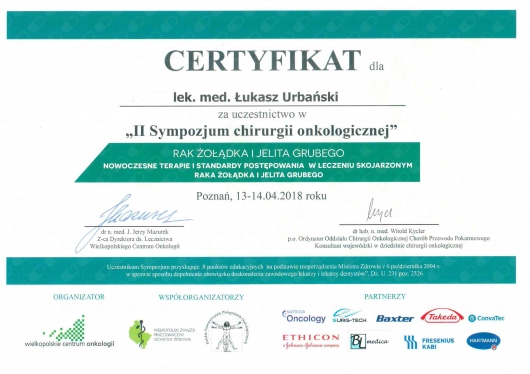 W lutym 2016 roku rozpocząłem pracę oraz kolejne szkolenie specjalizacyjne w Oddziale Chirurgii Onkologicznej Szpitala Klinicznego Przemienienia Pańskiego w Poznaniu, gdzie pracuje do dzisiaj. W 2019 roku zdałem egzamin państwowy i uzyskałem tytuł specjalisty chirurgii onkologicznej (kierownik specjalizacji dr Andrzej Otworowski). W oddziale zajmuje się chirurgią stanów chorobowych takich jak: