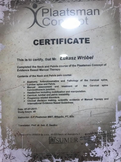 Pan Łukasz jest świetnym specjalistą. Trafiłam do niego z bólem szyji i kręgosłupa już po pierwszej wizycie poczułam się znacznie lepiej. Gorąco polecam. Oby więcej było takich profesjonalistów jak Pan Łukasz z prawdziwego powołania. Dziękuję.