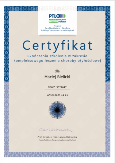 Jestem aktywnym członkiem towarzystwa endokrynologicznego, diabetologicznego, polskiego towarzystwa leczenia otylosci, lipidologicznego.