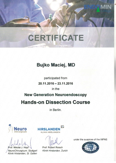 Specjalizuję się w małoinwazyjnych technikach operacyjnych mózgu i kręgosłupa z zastosowaniem mikroskopu operacyjnego i endoskopii. Posiadam szczególne doświadczenie w chirurgii nowotworów mózgu – glejaków (operacje z neuromonitoringiem, w wybudzeniu), guzów podstawy czaszki (m.in. guzy kąta mostowo-móżdżkowego), dyskopatie szyjne, piersiowe i lędźwiowe z dostępów klasycznych (otwartych) oraz pełen zakres chirurgii endoskopowej kręgosłupa, instrumentalne stabilizacje kręgosłupa, sztuczne dyski, odbarczenia szczytowo-potyliczne w zespole Chiari, mikroodbarczenia naczyniowe w konfliktach naczyniowo-nerwowych (neuralgia trójdzielna, połowiczy kurcz twarzy), plastyki podstawy czaszki – interdyscyplinarne operacje endoskopowe z zespołem laryngologicznym, naczyniaki i tętniaki mózgu (pęknięte i niepęknięte, operacje klasyczne i endowaskularne – unikalne wśród neurochirurgów doświadczenie), naczyniaki rdzenia kręgowego, endoskopowe leczenie wodogłowia i torbieli mózgu/kręgosłupa, interwencyjne leczenie bólu (blokady kręgosłupa, stawów międzykręgowych, foraminalne, zwojów nerwowych, epiduralne, blokady nerwów obwodowych pod RTG lub USG, termolezje, implantację stymulatorów rdzeniowych w leczeniu bólu).